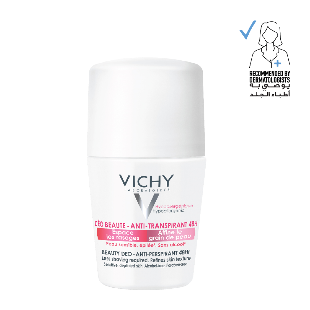 مزيل العرق فيشي بيوتي ديو فائق الانتعاش يدوم طويلا و ينظم التعرق لمدة 48 ساعة و يهدئ البشرة .